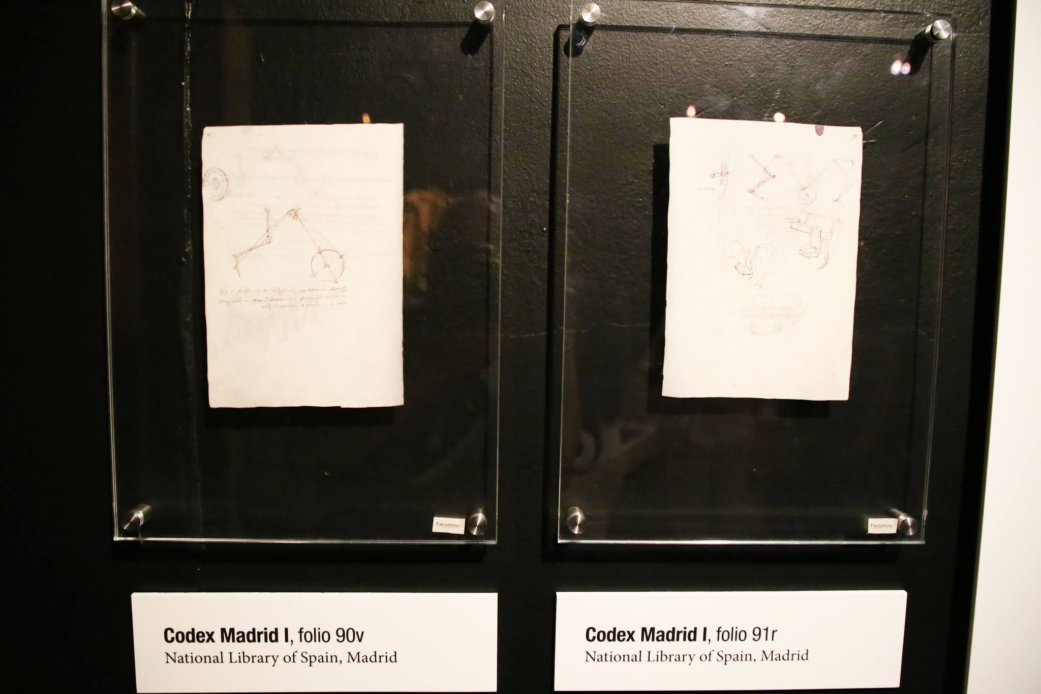 The second room on the tour was split in to two sections by a large partition with an opening to walk through. In the first part of the second room, a large wooden replica of Leonard Da Vinci's mechanical lion was displayed along with copies of pages from the Codex Atlanticus and illustrations explaining the design and structure of the mechanical lion. The lion was built by Da Vinci to walk before the king of France and present him with flowers.
